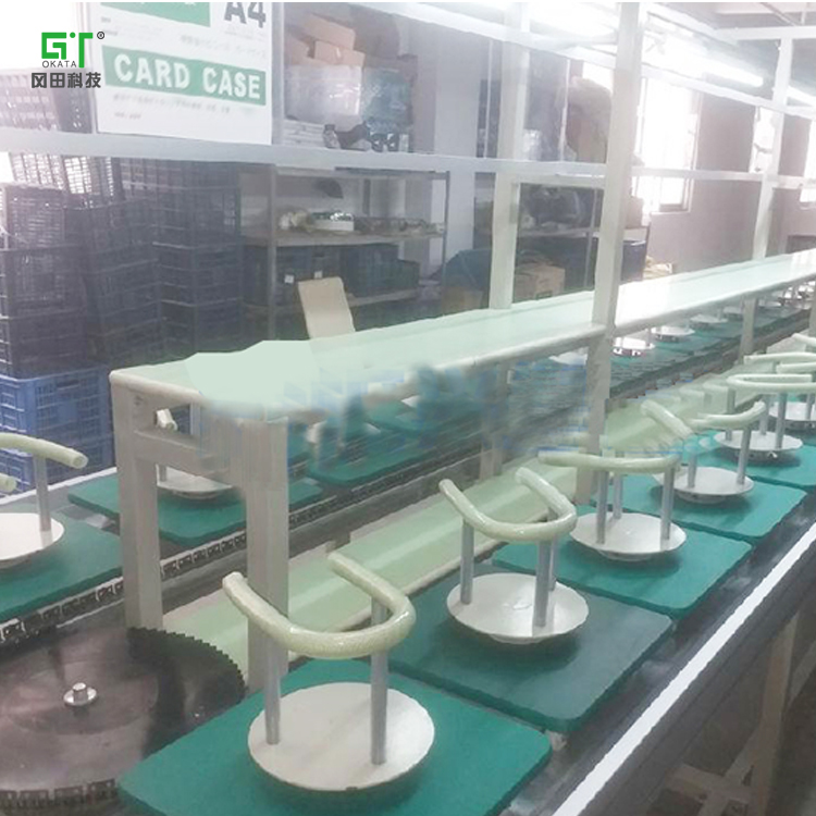 該類生產(chǎn)裝配線采用PVC防靜電尼龍片基帶作為傳送介質(zhì),以鋁合金型材為護邊,適用于汽車零部件